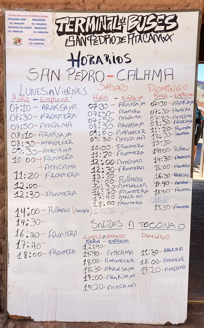 Horarios de salida de buses desde y hacia San pedro de atacama / Calama.