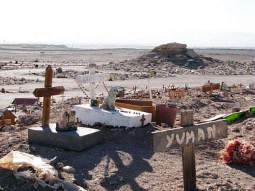 A 20 kilómetros de Calama, en el sector conocido como el Paredón, camino a Chiu-Chiu, encontramos el Cementerio de Mascotas, lugar que los Calameños poco a poco lo han transformando en un santuario de los animales.
