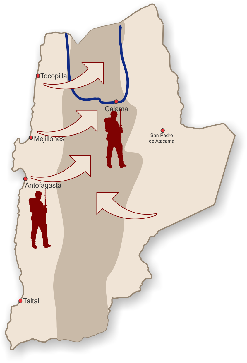 - 1879-1882: La Guerra del Pacífico, enfrentando a Chile contra Bolivia y Perú por los recursos y límites fronterizos, culmina con el triunfo chileno. Chile anexa las áreas de Tacna, Tarapacá y Antofagasta, incorporando una significativa riqueza minera y aumentando su extensión nacional.